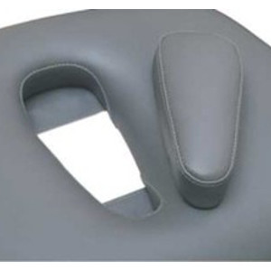 Wygodny zagłówek regulowany jest za pomocą sprężyny gazowej z kątem nachylenia w zakresie: -60° do 60°. Wycięcie na twarz ułatwia oddychanie podczas zabiegu.