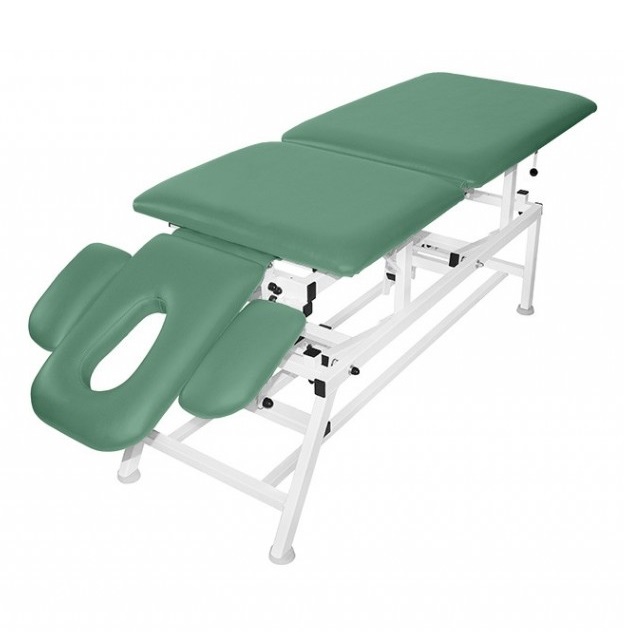 Stół posiada szerokie 5-segmentowe leże, pokryte najwyższej jakości tapicerką, dzięki temu jest wyjątkowo wytrzymały i odporny na ścieranie. Występuje w wielu opcjach kolorystycznych, co pozwala na dopasowanie go do każdego gabinetu.