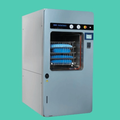 Sterylizatory na parę wodną o pojemnościach komory od 4 do 12 jednostek wsadu zgodnych z normą PN-EN 285 tj. 600 x 300 x 300 mm (d x sz x w) w wersji nieprzelotowej lub w wersji przelotowej.