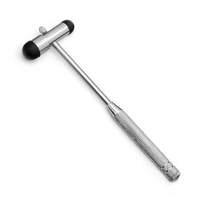 Młotek neurologiczny Buck MDF 515 doskonale wyważony ze stroną do badania dzieci i dorosłych: ręcznie wykonany; 100% bezlateksowe; doskonale wyważony; do badania dzieci i dorosłych; zaopatrzony w końcówkę Babinskiego; wkręcany w rękojeść pędzelek; dożywotnia gwarancja! Młotek neurologiczny Buck MDF 515 jest to młotek ręcznie wykonywany w tradycyjnej manufakturze MDF. Od roku 1971 instrumenty MDF są wytwarzane przez mistrzów. Doskonały młotek neurologiczny MDF Instruments. Młotek neurologiczny Buck MDF 515 służy do badania głębokich odruchów ścięgnistych. Młotki neurologiczne pomagają w wykryciu nieprawidłowości w ośrodkowym i obwodowym układzie nerwowym. Jest to młotek wszechstronny z podwójną głowicą. Młotek neurologiczny Buck MDF 515 przeznaczony jest do badania dorosłych i dzieci, dzięki dwustronnej głowicy. Wyważona głowica jest wyposażona w dużą i małą końcówkę, wykonaną z delikatnego tworzywa TPR. Jest zaprojektowana tak, aby uderzenia przy badaniu były możliwie bezbolesne i bardzo precyzyjne. Rękojeść młotka Bucka. Uchwyt młotka jest doskonale zrównoważony i precyzyjnie zbalansowany dla zapewnienia pełnej kontroli nad siłą uderzenia. Zintegrowany szpikulec. Ostro zakończony szpikulec wkręcany w głowicę służy do badania reakcji na ukłucie. Wykonany jest z chromowanego mosiądzu. Wysuwany pędzelek z naturalnego włosia. Wbudowany (wkręcany) w koniec rękojeści pędzelek wykorzystywany jest do badania innych odruchów neurologicznych. Waga: 107 g. Gwarancja: dożywotnia. Dostępne kolory: czarny.