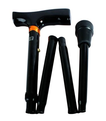 Składana z 4 części, konstrukcja aluminiowa z drewnianym wykończeniem, pakowana w pokrowiec, regulacja skokowa długości co 2,5 cm, kolory: ciemnobrązowy i czarny.