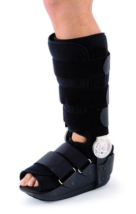 Orteza skokowo-stopowa długa o lekkiej, sztywnej i wytrzymałej konstrukcji, osłonięty zegar umożliwia ograniczenie zgięcia podeszwowego i grzbietowego w zakresie 0° - 45° co 15°, wypinana miękka wyściółka, zapięcie przy pomocy taśm, wersja prawa i lewa.