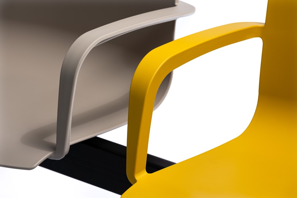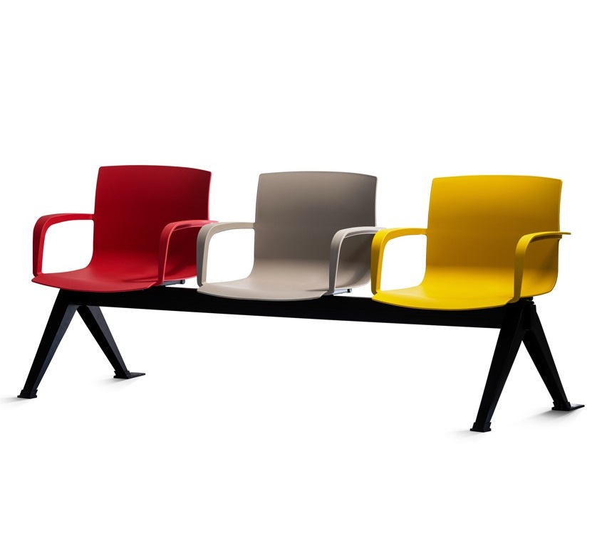 Dwa podłokietniki które łączą się ze sobą z tyłu oparcia - to charakteryzuje siedzisko w krzesłach i ławkach Manila. Spotykające się w uścisku podłokietniki z cienkim kubełkiem z tworzywa sztucznego, ukształtowane tak aby delikatnie wspierać plecy. Dostępne w 6 modnych i praktycznych kolorach w połączeniu z czarnymi stelażami (lub w innym kolorze). Uzupełnieniem ławek do poczekalni MANILA jest cała rodzina krzeseł na różnych wersjach podstawy.