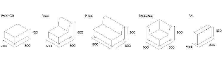 – dostępne elementy siedziskowe narożnikowe, podłokietniki oraz pufy,