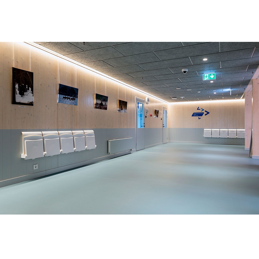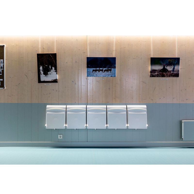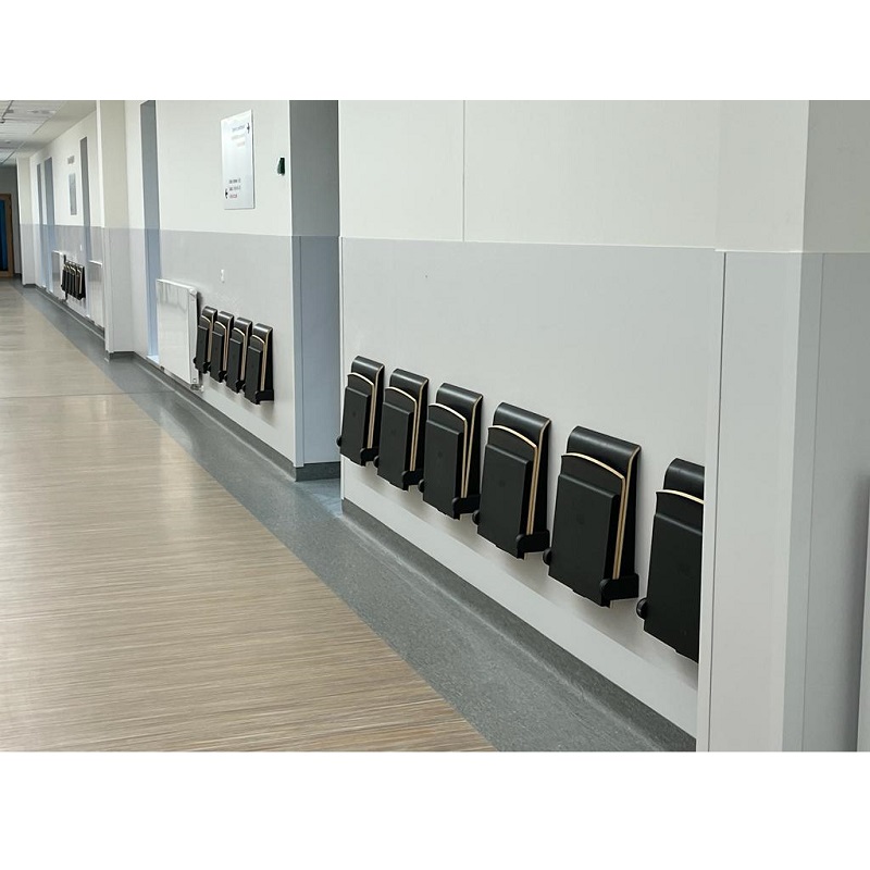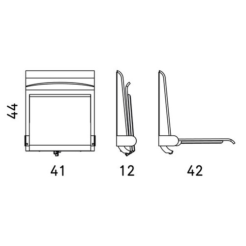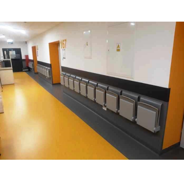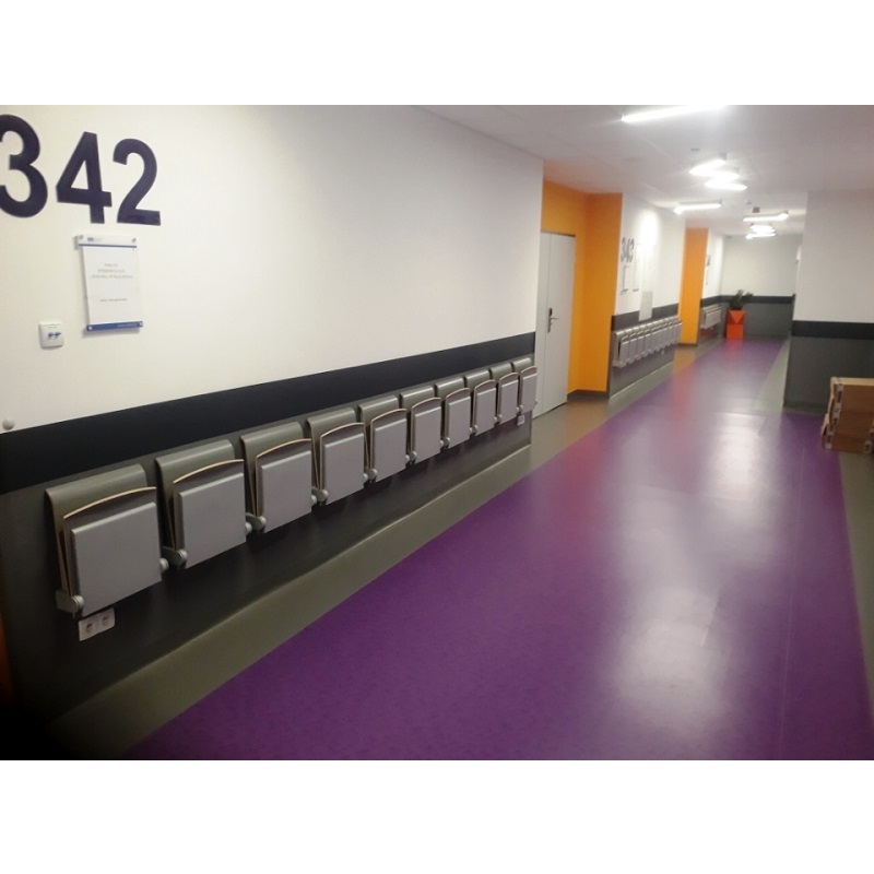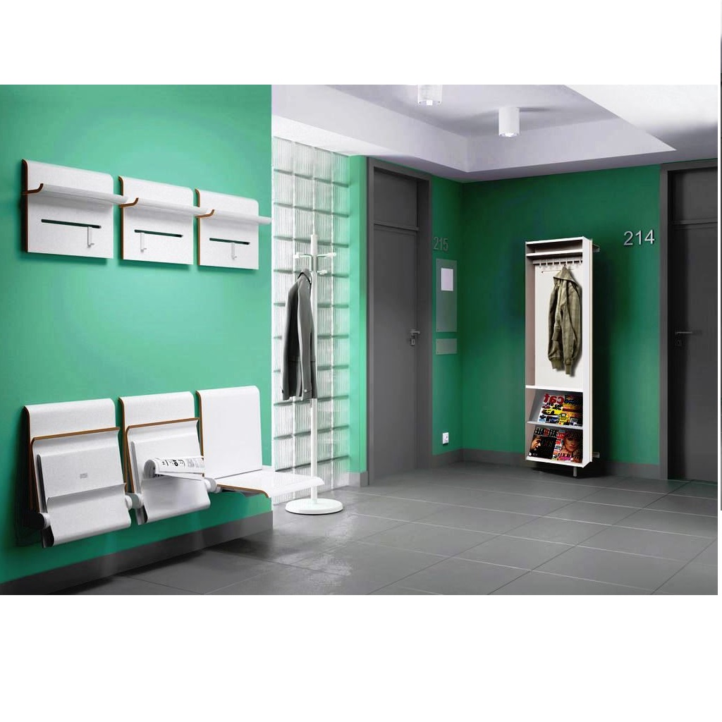 Rozkładane siedziska naścienne są bardzo praktycznym elementem wyposażenia w miejscach wymagających swobody komunikacyjnej, zajmując po złożeniu tylko 15 cm. Charakteryzują się łagodną, uniwersalną i jednocześnie nowoczesną stylistyką wzorniczą. Siedzisko wykonane jest z formowanej sklejki wykończonej laminatem lub fornirem w kolorze naturalnego dębu. Krawędzie siedzisk są frezowane w sposób odsłaniający kolor drewna, co podkreśla prostotę formy i jej organiczną dekoracyjność. Stalowe elementy pokryte zostały lakierami proszkowymi. Siedziska mogą być wyposażone w automatyczny mechanizm powrotu do pozycji zamkniętej.