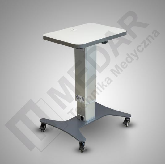 Stolik z regulacją wysokości pod jedno urządzenie. Duży zakres regulacji wysokości (31 cm, od 70 cm do 101 cm) pozwala na dostosowanie wysokości urządzenia do każdego pacjenta. Intuicyjny sterownik regulacji wysokości pozwala na bardzo komfortową pracę – teraz nawet w ciemni nie pomylisz kierunków. Wykonany z solidnych i wytrzymałych komponentów. Zamontowane w podstawie kółka umożliwiają łatwe przemieszczanie stolika wraz z urządzeniem, a skuteczne hamulce zapewnią stabilność położenia w miejscu, w którym pracujesz.