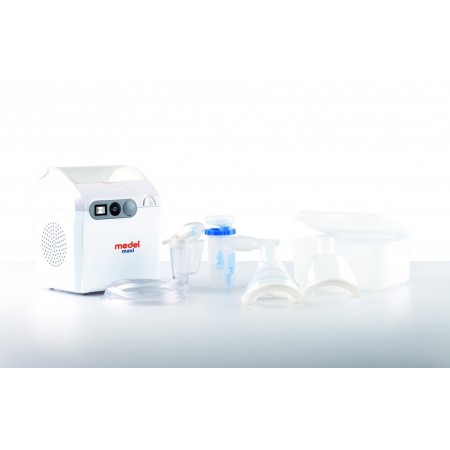 - kompletny zestaw (kompresor, maska dla dzieci, maska dla dorosłych, ustnik, końcówka do nosa, przewód powietrzny, zapasowy filtr powietrza, nebulizator MedelJet Pro, Nebulizator MedelJet Rhino)