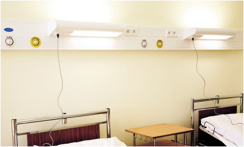 * oświetlenia nocnego, pozwalającego na orientację przestrzenną w sali chorych. Załączanie przyciskiem na pilocie i włącznikiem na panelu. Źródło światła 5W, 7W lub LED.