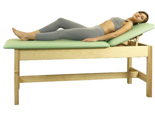 Przeznaczenie: leżanka została zaprojektowana specjalnie z myślą o wygodzie pacjenta i terapeuty. Stosowana jest m. in. do zabiegów rehabilitacyjnych, masażu, fizykoterapii.