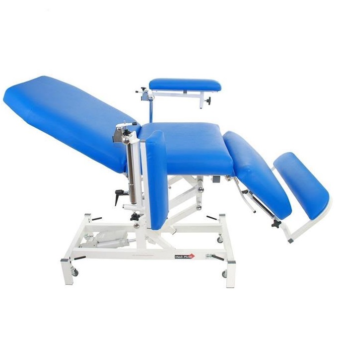 Fotel do dializ zaprojektowany z myślą o komforcie dializowanego pacjenta. Regulacja wysokości oraz sekcji pleców realizowana przy pomocy pilota przewodowego. Fotel tapicerowany specjalną mieszanką pianki o różnym stopniu gęstości i wyprofilowaniu.
