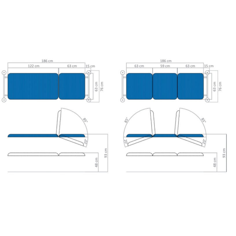 Wózek do transportu pacjenta w pozycji leżącej z elektryczną bądź hydrauliczną regulacją wysokości. Do wyboru dwie lub trzy sekcje leża.