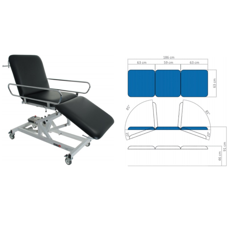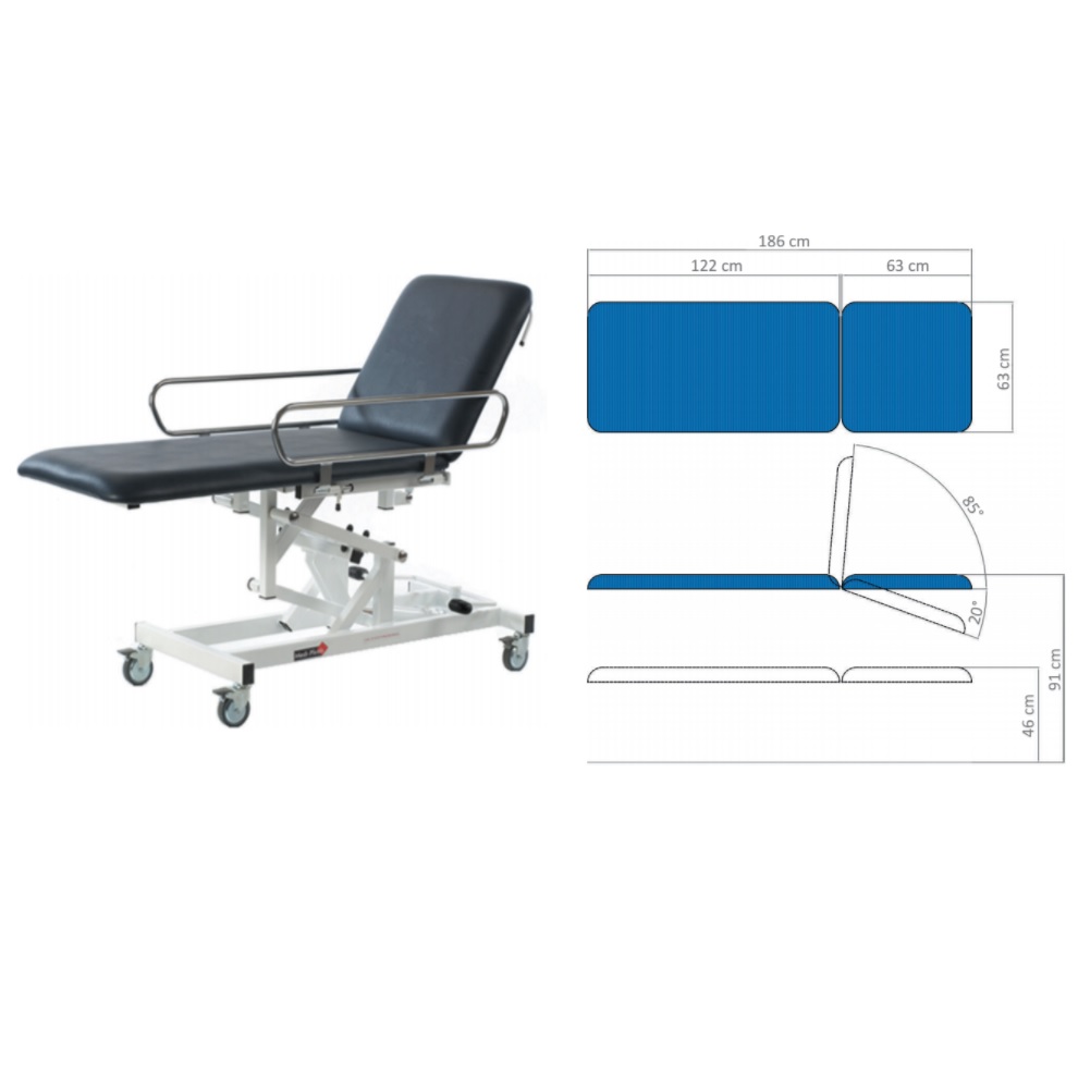 Wózek do transportu pacjenta w pozycji leżącej z elektryczną bądź hydrauliczną regulacją wysokości.