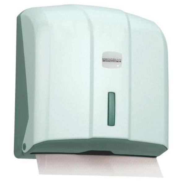 - Dozownik do ręczników składanych typu ZZ, wykonany z tworzywa ABS w kolorze białym.
