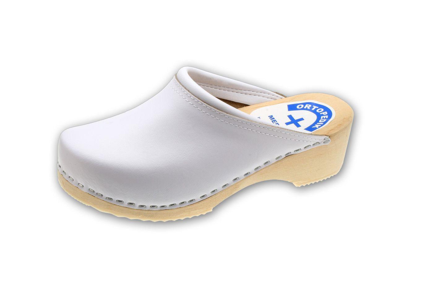 Pantolety zdrowotne (drewniaki) na spodach drewnianych z profilem ortopedycznym, podeszwą przeciwpoślizgową i cholewką skórzaną. Cholewka gładka lub z perforacją.