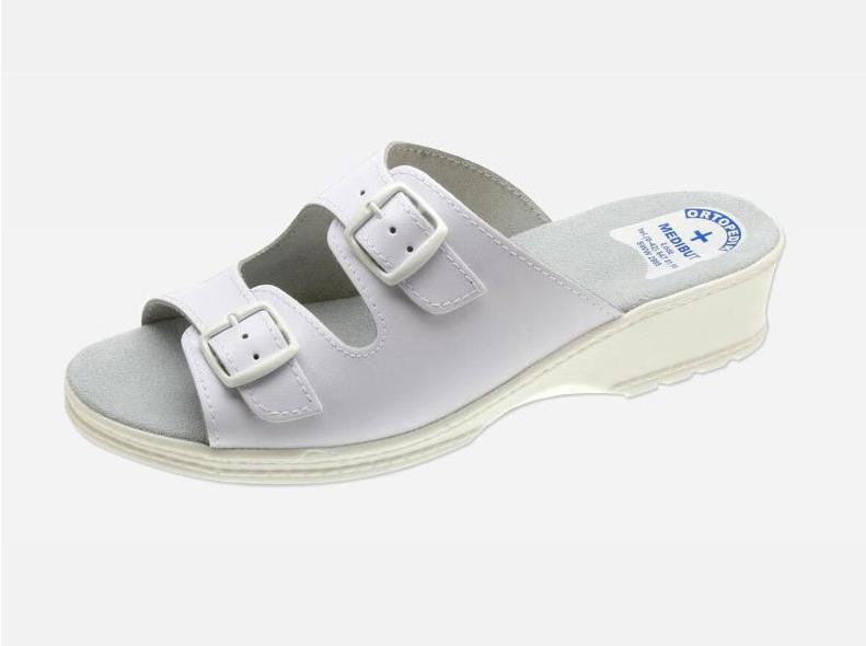 Sandały damskie na koturnie, na spodach przeciwpoślizgowych, z profilem ortopedycznym. Wyściółka i cholewka skórzana, możliwość regulacji tęgości.