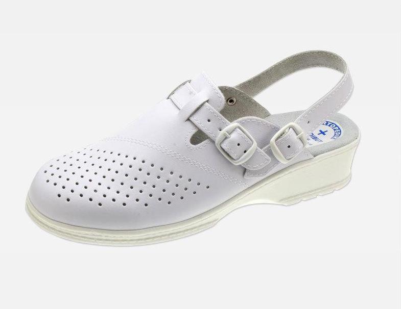 Obuwie damskie na koturnie, na spodach przeciwpoślizgowych, z profilem ortopedycznym. Wyściółka i cholewka skórzana, możliwość regulacji tęgości. Cholewka z perforacją.