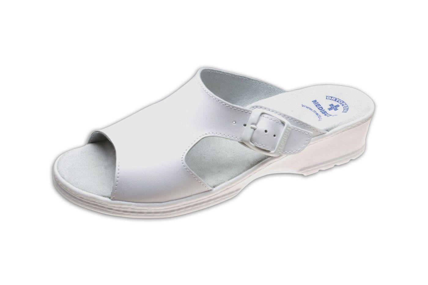 Obuwie damskie na koturnie, na spodach przeciwpoślizgowych, z profilem ortopedycznym. Wyściółka i cholewka skórzana, możliwość regulacji tęgości.