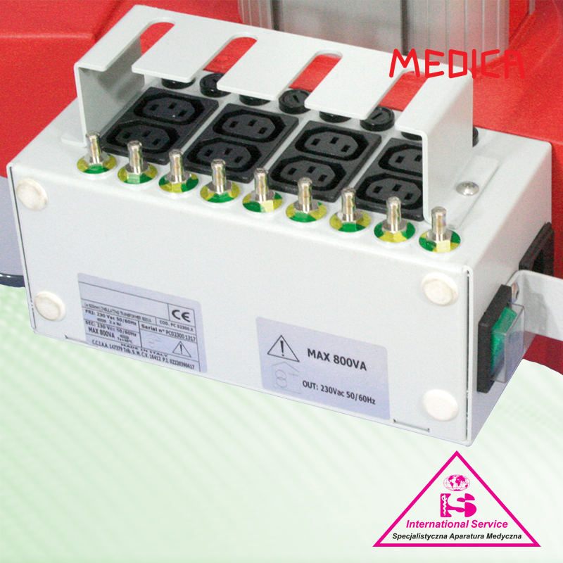 Jednostka cenralna zasilana jest poprzez specjalizowany zasilacz medyczny (SNP-A129-M) prądem stałym 24 VDC. Podzespoły są izolowane galwanicznie za pomocą przetworników optoelektronicznych.