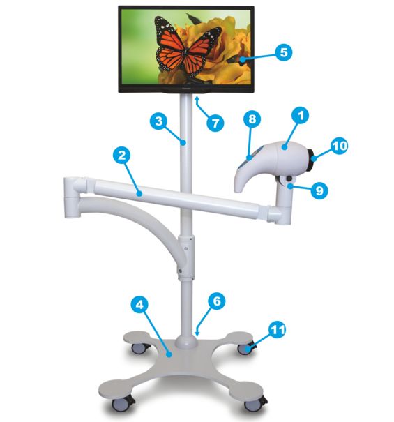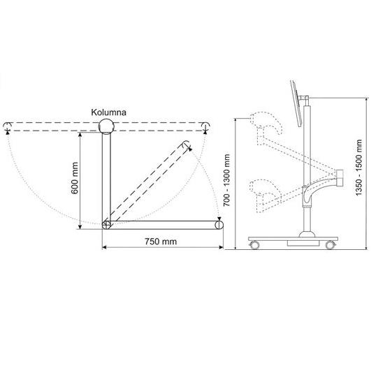 Wideokolposkop VC HD-1000 jest urządzeniem wolno-stojącym na podstawie samojezdnej. Łatwy dostęp do pacjentki zapewniają funkcjonalnie zaprojektowane ramiona urządzenia. Konfiguracja i wymiary ramion oraz kolumny określają przestrzeń roboczą urządzenia: