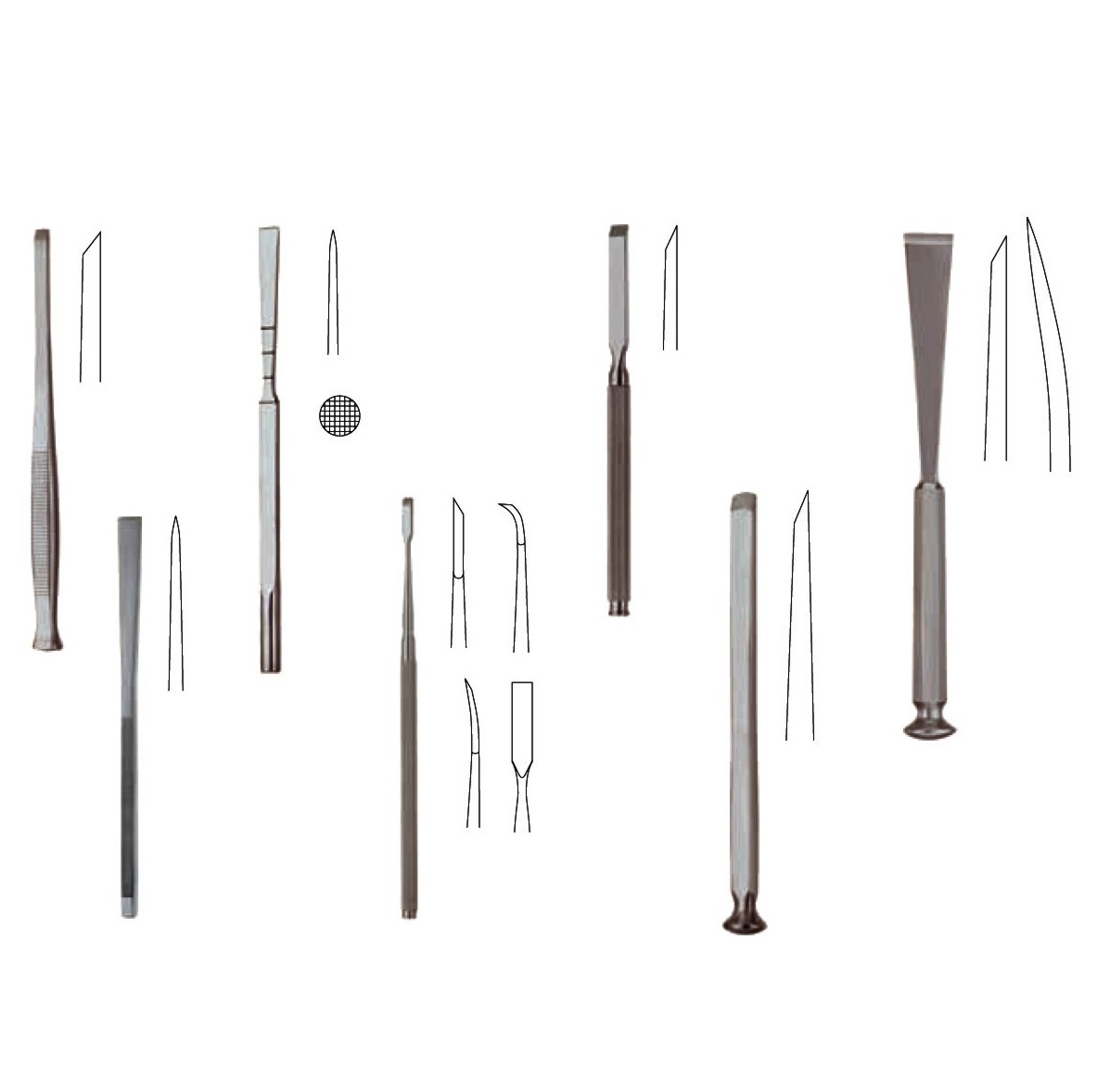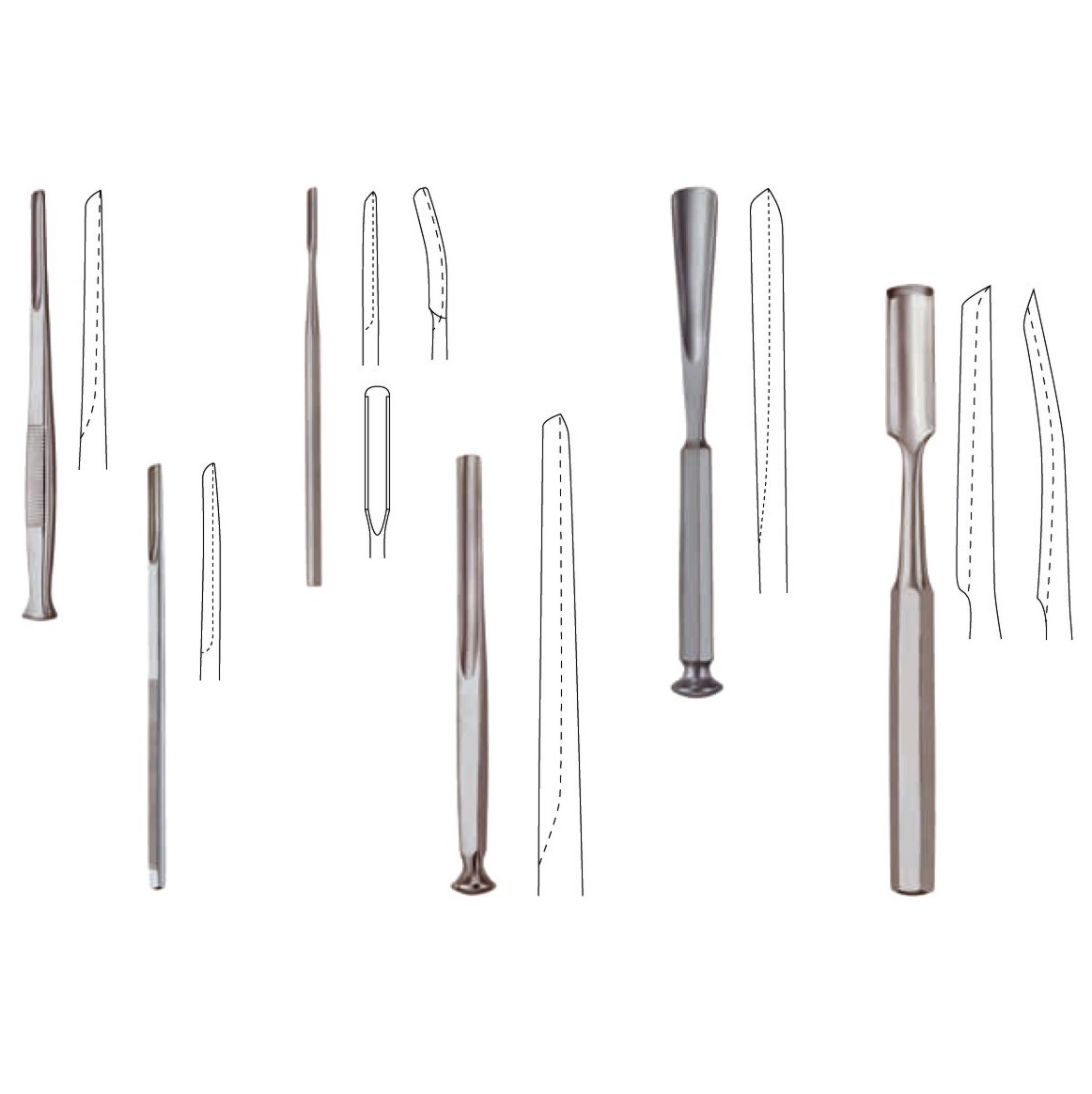 - dłuta z uchwytem z Novotexu - proste oraz żłobowe