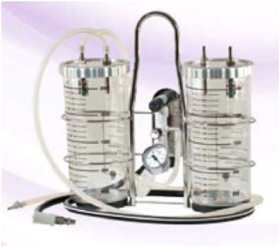 Przenośny ssak inżektorowy z dwoma wielorazowymi zbiornikami na wydzielinę z możliwością zawieszenia na szynie. Zasilany z gniazda sprężonego powietrza lub tlenu. Wyposażony w odpowiednie filtry i przewody.