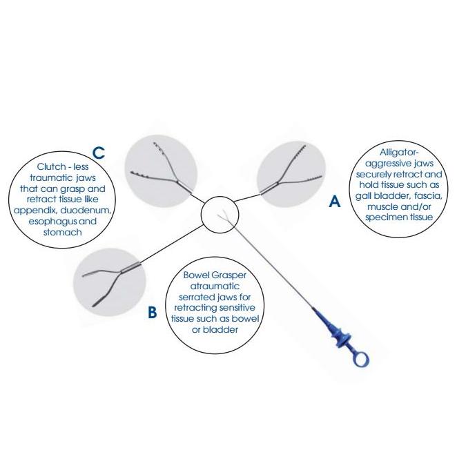 MicroGrip o Ø2,7 mm dł. 27 cm, jest instrumentem laparoskopowym zaprojektowanym do przezskórnego wprowadzania do jamy otrzewnowej, podczas procedury laparoskopowej "Single Port" jak i standardowej.