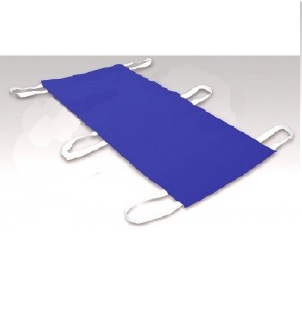 Prześcieradło z 6 uchwytami, dzięki którym przenoszenie pacjentów jest łatwe i proste przez rozłożenie ciężaru pacjenta na 6 osób personelu.