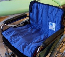 Podkład zaopatrzony w uchwyty ułatwiające pozycjonowanie pacjenta, stosowany na siedzeniach wózków inwalidzkich, krzeseł