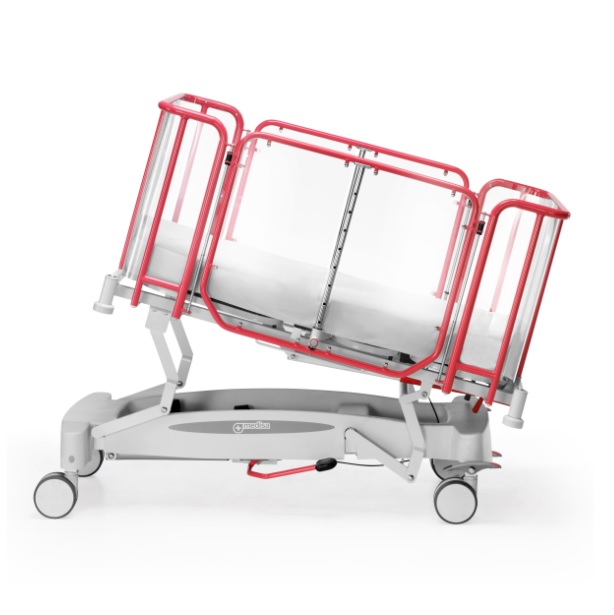 - Leże łóżeczka jest czterosegmentowe, wykonane z HPL dzięki czemu jest odporne na wilgoć, preparaty myjące i dezynfekcyjne oraz na uszkodzenia mechaniczne.