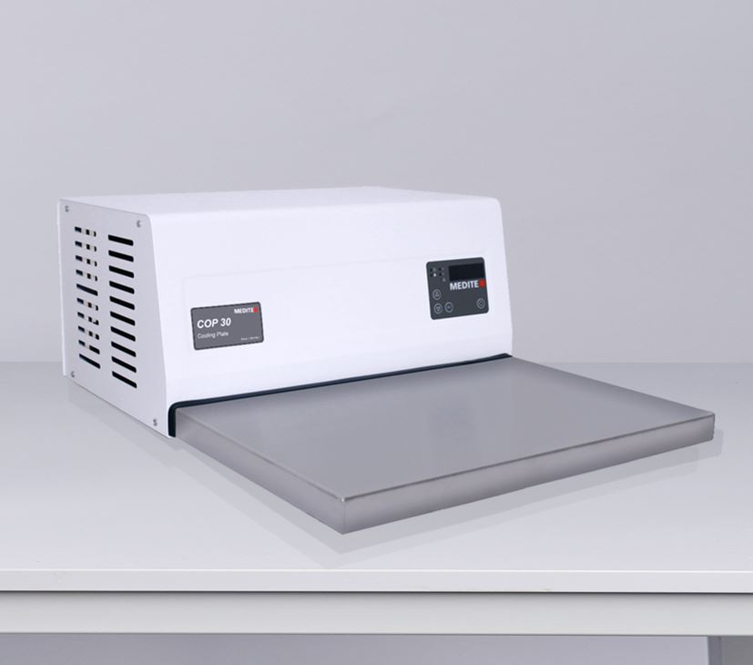 COP 30 to prosta, ale wydajna płyta chłodząca. Idealnie nadaje się do schładzania bloczków parafinowych w formach do zatapiania zaraz po dozowaniu, w celu przygotowania ich do cięcia mikrotomem i stanowi doskonałe uzupełnienie stanowiska pracy.