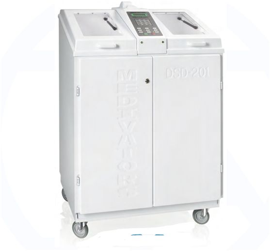 Posiada te same zalety co DSD-201 oraz wbudowany tester szczelności. dzięki czemu chroni przed przedostaniem się wody do endoskopu w trakcie cyklu. Podzespół testera szczelności jest całkowicie wbudowany w korpus myjni. Na wyposażeniu dwie złączki do badania szczelności. W zależności od używanych endoskopów konieczny jest zakup dodatkowych złączek. Automatyczna myjnia endoskopowa posiadająca dwa w pełni niezależne, asynchronicznie wykorzystywane komory myjące przeznaczona jest do szybkiej dekontaminacji dużych ilości endoskopów. Cykle pracy urządzenia są programowane przez użytkownika. Ulepszony zestaw czujników monitoruje wszystkie parametry cyklu zapewniając pełną dezynfekcję endoskopów. Dzięki unikalnej konstrukcji, urządzenie w każdym cyklu przeprowadza samodezynfekcję swych wewnętrznych kanałów. Wszystkie parametry cyklu są dokumentowane w formie wydruku dziennika. Kontrola oparów możliwa jest dzięki (opcjonalnemu) systemowi kontroli oparów (VMS). Trójstopniowy system filtrowania wody redukuje ilość zanieczyszczeń stałych i dostarcza wodę wolną od bakterii do płukania endoskopów. Myjnia posiada podgrzewane zasobniki środka dezynfekcyjnego, kompresory powietrza, drukarkę, system wstępnej filtracji wody oraz jeden zestaw filtrów powietrza, wody i środka dezynfekcyjnego. W zależności od używanych endoskopów konieczny jest zakup dodatkowej armatury przyłączeniowej.
