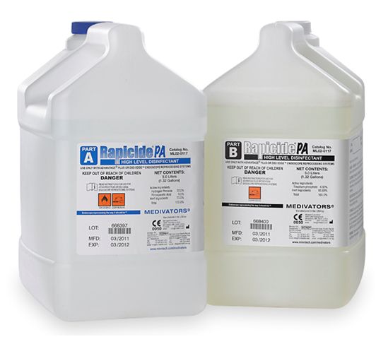 Rapicide PA jest jednorazowego użytku środkiem dezynfekującym na bazie kwasu nadoctowego. Przeznaczony jest dla myjni-dezynfektorów MEDIVATORS DSD EDGE i ADVANTAGE PLUS. Środek ten stosuje się w temperaturze pokojowej, jest przyjazny dla środowiska.