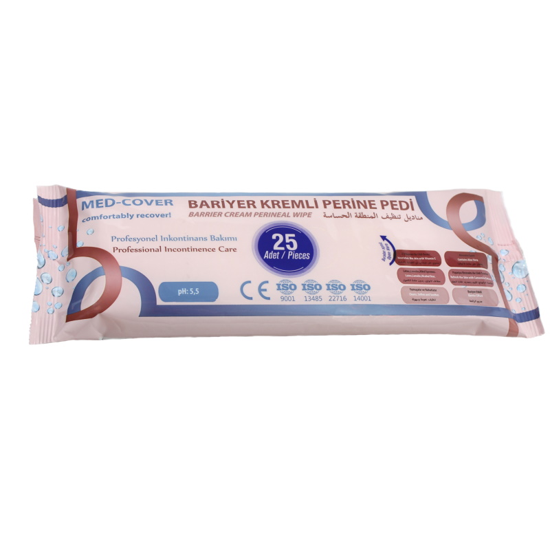 MED-COVER PerinealWipe przejmuje rolę uszkodzonej naturalnej warstwy barierowej z zawartością 3% dimetikonu. Ta warstwa zapewnia oddychalność i blokową transmisję cieczy.