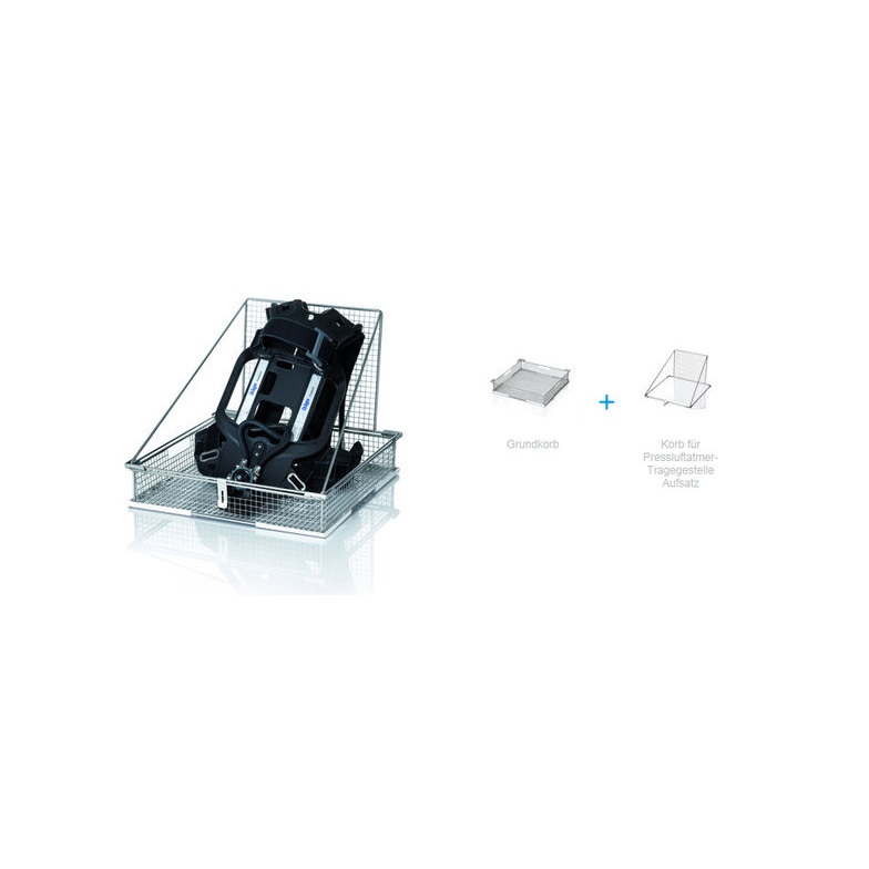 Kosz do aparatów oddechowych ze sprężonym powietrzem umożliwia wyczyszczenie w ciągu godziny do 10 stelaży do noszenia aparatów.
