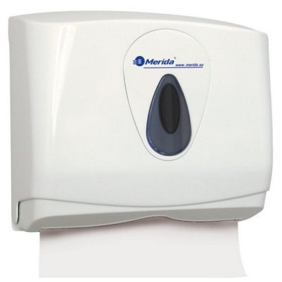 Pojemnik na pojedyncze ręczniki papierowe. Wykonany z wytrzymałego tworzywa ABS. Pojemność urządzenia wynosi do 250 sztuk ręczników. Pojemnik dostępny w kolorze białym. Posiada okienko do kontroli ilości ręczników. Zamykany na kluczyk.