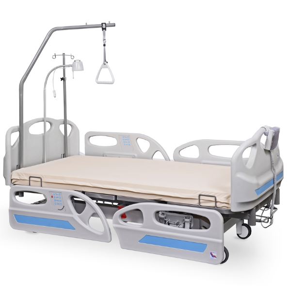 Wielofunkcyjne łóżko szpitalne ANDIMED przeznaczone do leczenia i pielęgnacji chorych na oddziałach intensywnej opieki medycznej i oddziałach rehabilitacyjnych i kardiologicznych.