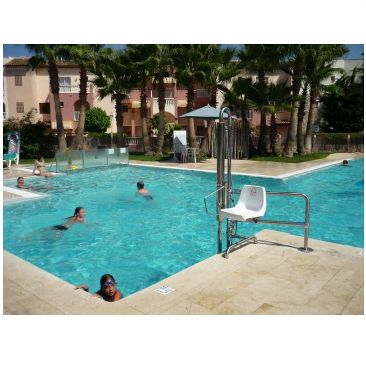 Najefektywniejsze i najszybsze rozwiązanie, służące przystosowaniu basenu do obowiązujących obecnie przepisów. Hydrauliczne podnośniki basenowe MET B2 zapewniają łatwy dostęp dla osób niepełnosprawnych oraz osób z ograniczoną mobilnością. Wyposażone w poręcze i 5 punktów wsparcia są całkowicie bezpieczne – nie zawierają elementów elektrycznych, smarów czy elementów zanieczyszczających.