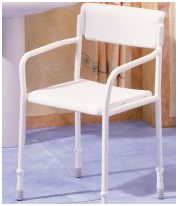 Krzesło prysznicowe: z oparciem, bez wycięcia higienicznego, z podłokietnikami, 4 położenia regulacji wysokości.