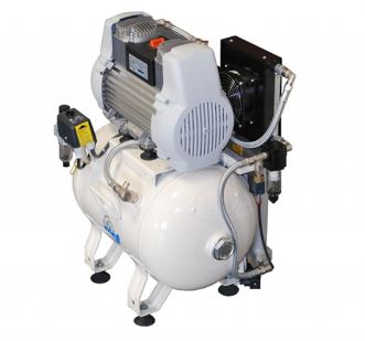 Kompresor wyposażony w osuszacz powietrza. Zapewnia najwyższy standard powietrza zasilającego urządzenia medyczne. Idealny do zasilania 1 unitu stomatologicznego.