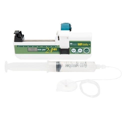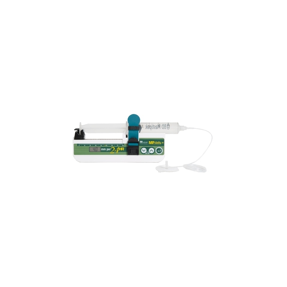 MP-Daily mm/24h to ambulatoryjna pompa strzykawkowa zapewniająca dokładną infuzję leków pacjentom objętym opieką szpitalną lub domową z regulowanym zakresem przepływu 1-99 mm/24godz. Umożliwia wygodne podawanie leków drogą dożylną, dotętniczą, podskórną. Gwarantuje ciągłość leczenia bez poczucia dyskomfortu, nawet podczas wykonywania codziennych czynności przez pacjentów.