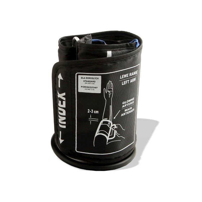 W zestawie oprócz mankietu znajduje się przewód powietrzny oraz plastikowa końcówka łącząca wężyk z cisnieniomierzem.