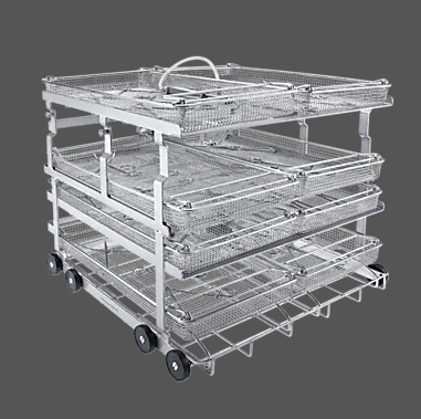 Wózek do optymalnego umieszczenia 8 pojemników siatkowych.