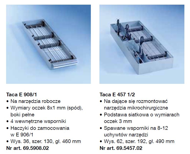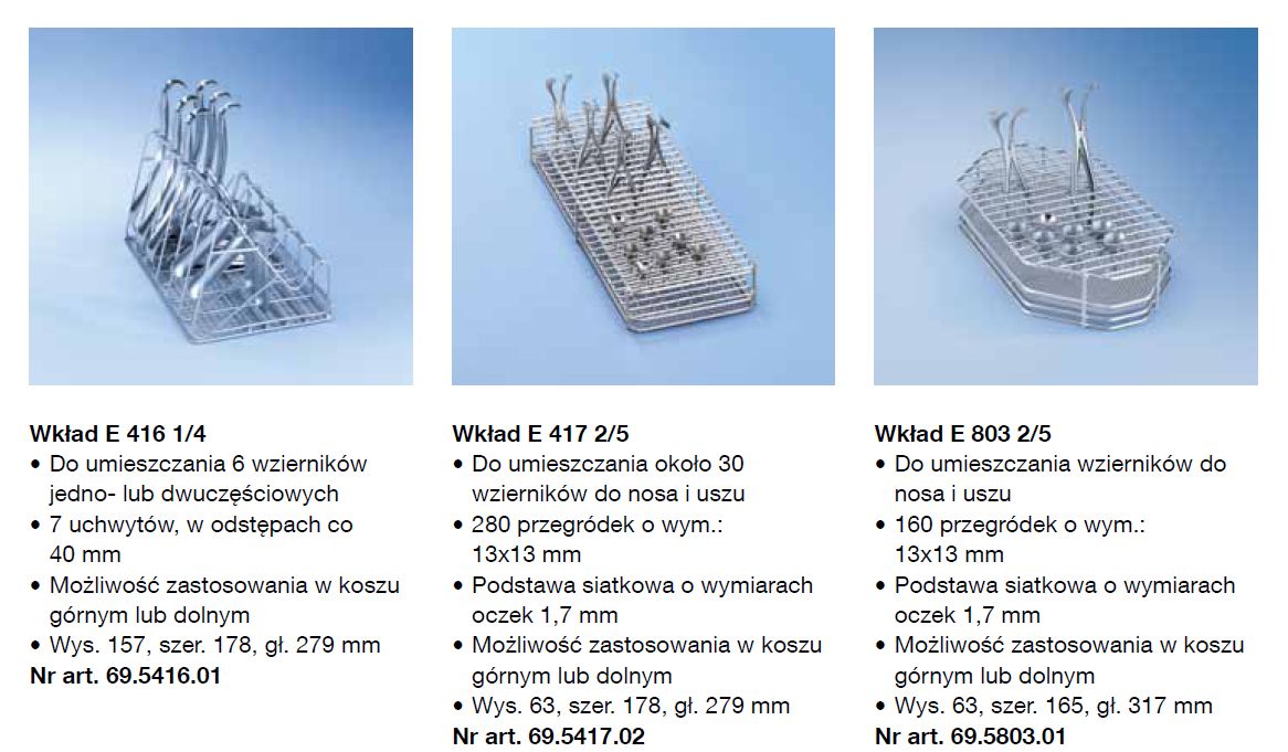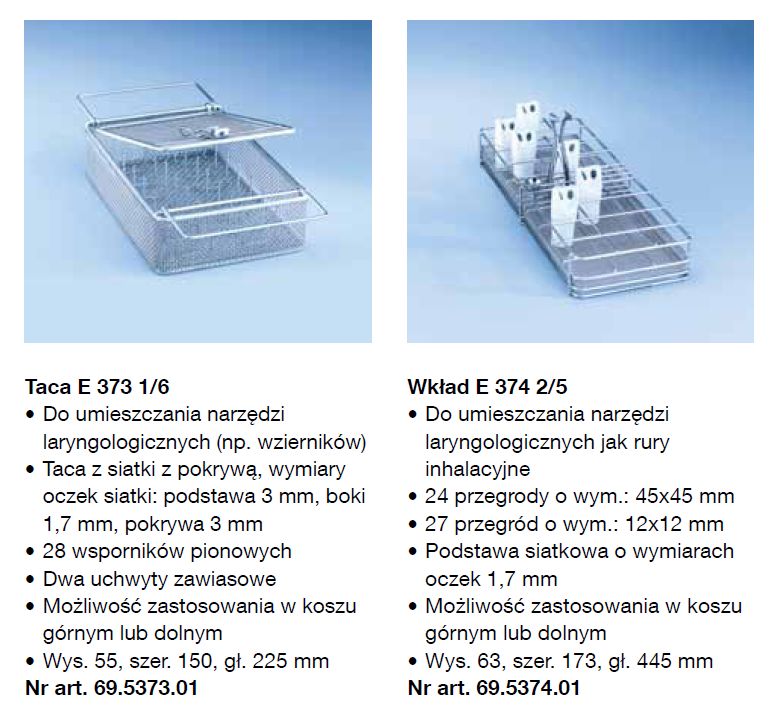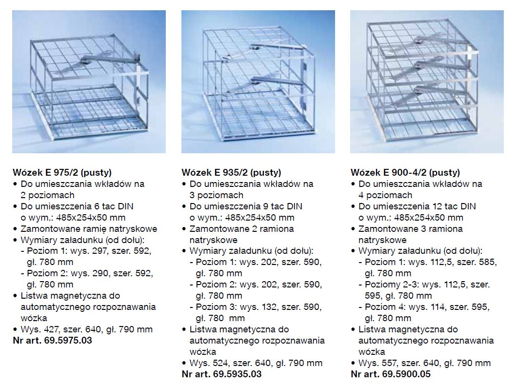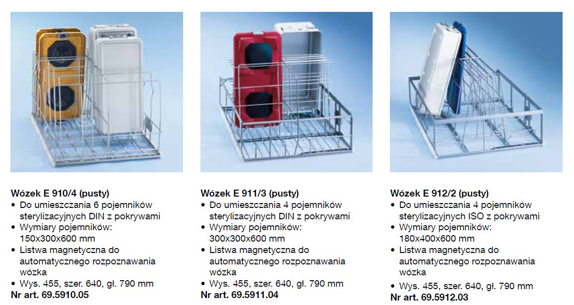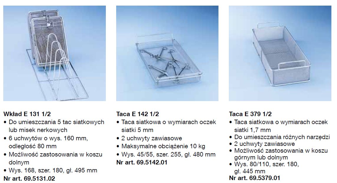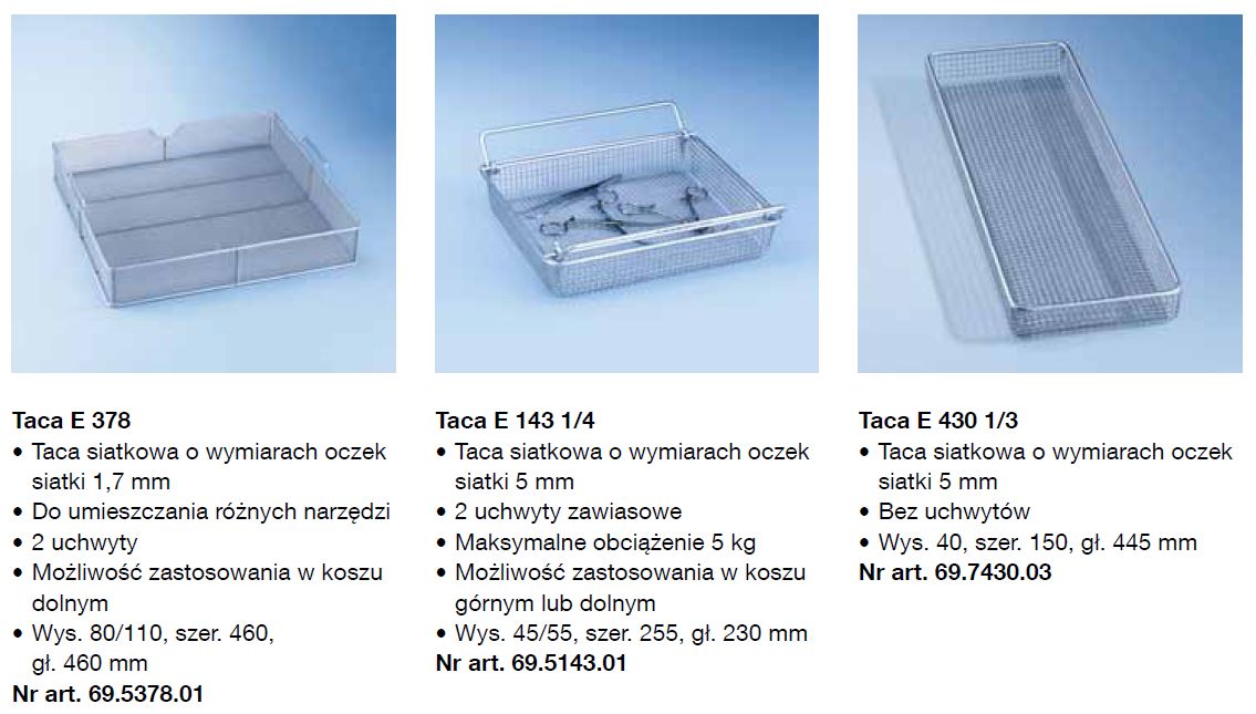 - Do umieszczania 6 pojemników sterylizacyjnych DIN z pokrywami