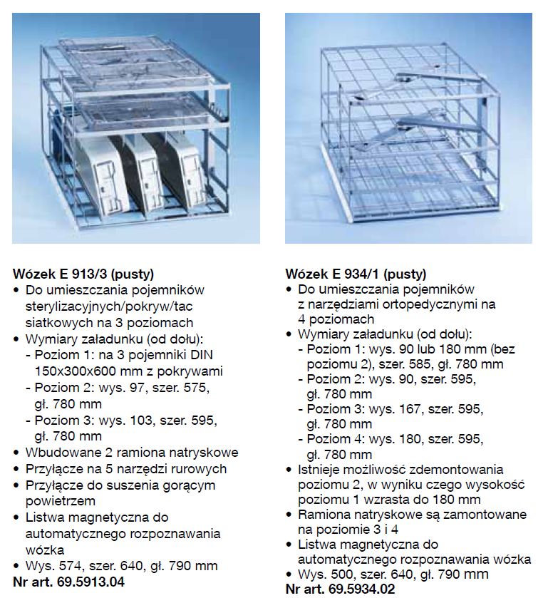 - Do umieszczania pojemników sterylizacyjnych/pokryw/tac siatkowych na 3 poziomach