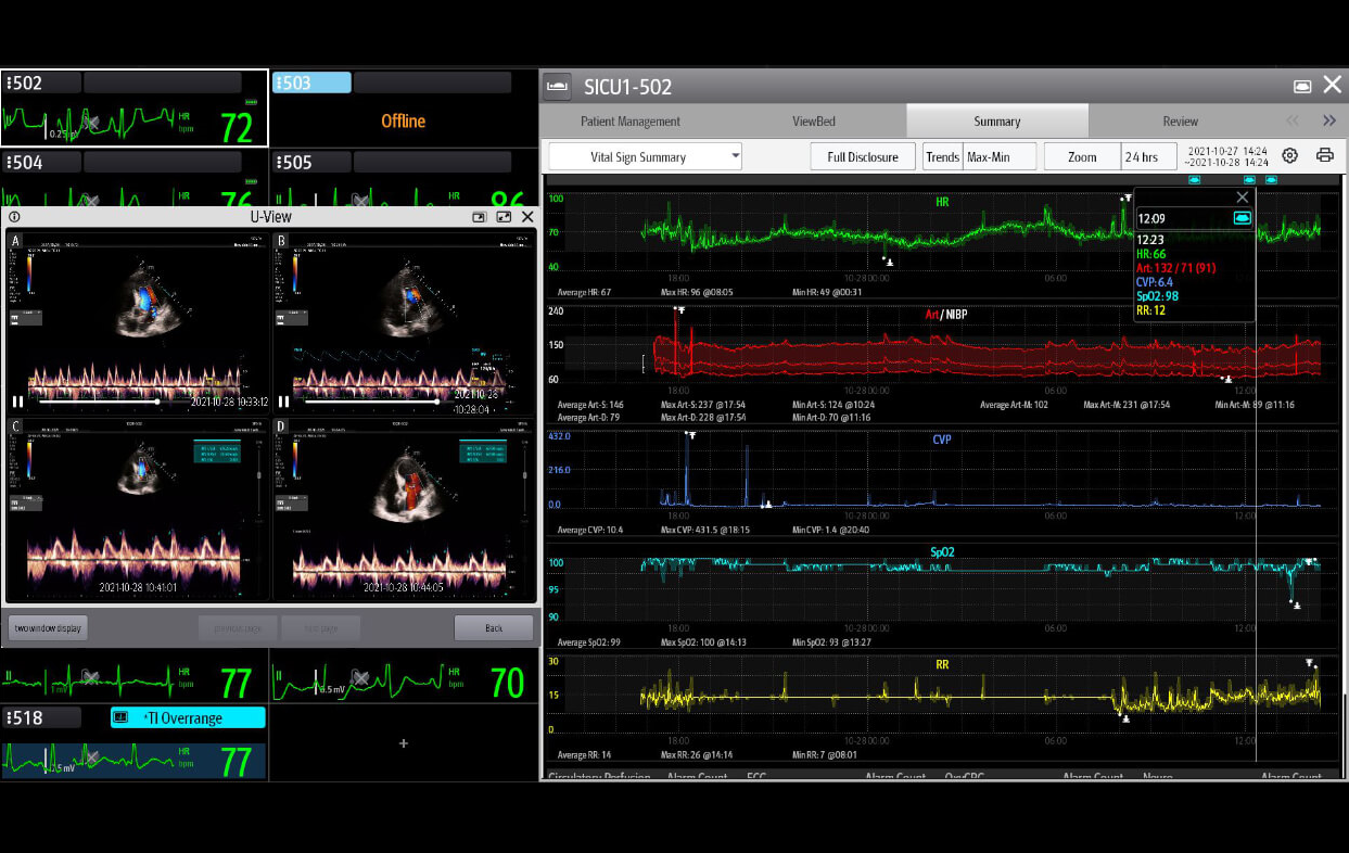 Dzięki Physio-View w X-Link EKG i inne wykresy fizjologiczne można oglądać jako widok nałożony na obraz USG, co ułatwia błyskawiczne podejmowanie decyzji. Dzięki U-View w X-Link obraz USG i inne dane fizjologiczne można zintegrować w stacji centralnej, aby mieć ogólny ogląd. To rozwiązanie jest narzędziem, które pozwoli uzyskać wyższy poziom diagnostycznej opieki przyłóżkowej oraz badań naukowych.