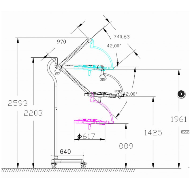 Doskonała lampa operacyjna jednoczaszowa LED500 o średnicy czasy 500mm zapewnia wyjątkowy zasięg ramienia oraz wygodę niezbędną do wygodnej pracy zabiegowej dzięki wygodnemu statywowi na kółkach. Źródłem światła lampy operacyjnej bezcieniowej LED 500 jest 48 diód LED z możliwością ogniskowania. Umieszczone w przestrzennej czaszy o średnicy 500mm z możliwością swobodnego obrotu.