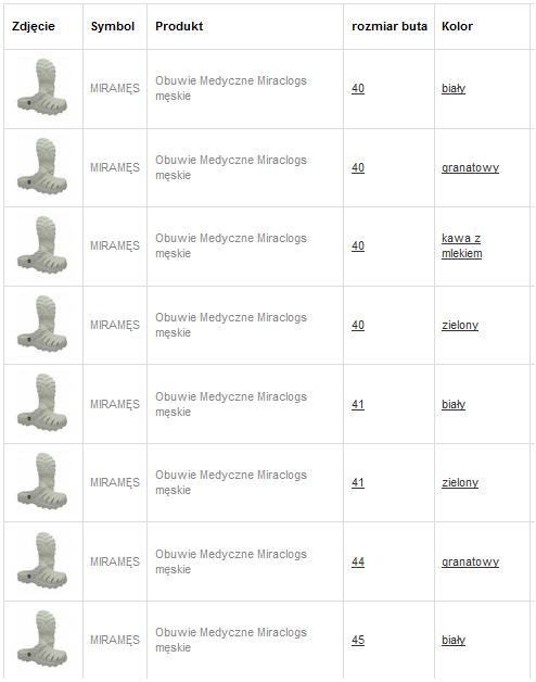 Dostępność obuwia: