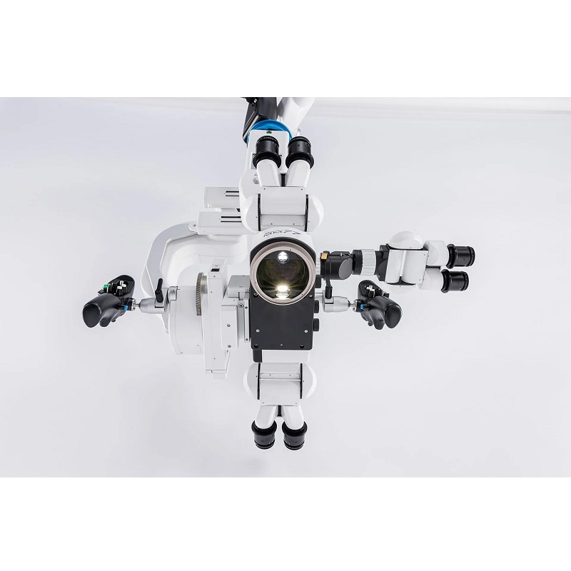 Obrotowy mechanizm binokularów głównego chirurga i asystenta, umożliwia regulację wysokości i pozycji, dostosowując się do wzrostu operatorów, dając im maksymalny komfort podczas najbardziej wymagających procedur.