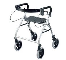 Podpórka czterokołowa ZEBRA przeznaczona dla osób, które potrzebują stabilnego wsparcia podczas nauki chodzenia, po urazach kończyn dolnych, do utrzymania równowagi i przenoszenia ciężaru ciała w schorzeniach urazowo-ortopedycznych. Także dla osób starszych, jako pomoc w utrzymaniu równowagi podczas chodzenia. Konstrukcja z czterema kółkami, siedziskiem oraz oparciem, zapewnia dużą stabilność, bezpieczniejsze poruszanie się oraz możliwość odpoczynku. Podpórka wyposażona jest w koszyk i tackę. Aluminiowa rama pokryta jest lakierem. Koła przednie samonastawne, tylne z hamulcami
