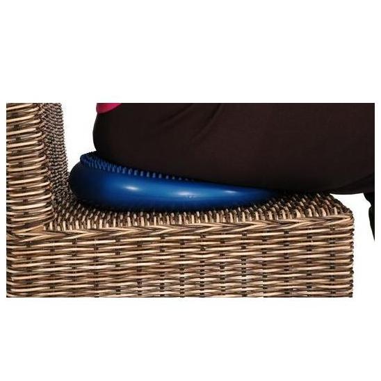 Standardowa poduszka powietrzna stosowana dla aktywnego i dynamicznego siedzenia, zalecana przez terapeutów. Poducha posiada jedną stronę gładką, a drugą pokrytą kolcami, którą można wykorzystać do ćwiczeń oraz masażu stóp jednocześnie pobudzając receptory. Poducha wykonana jest z PCV dzięki czemu można myć wodą i mydłem. Pakowana w poręczny kartonik z pompką.
